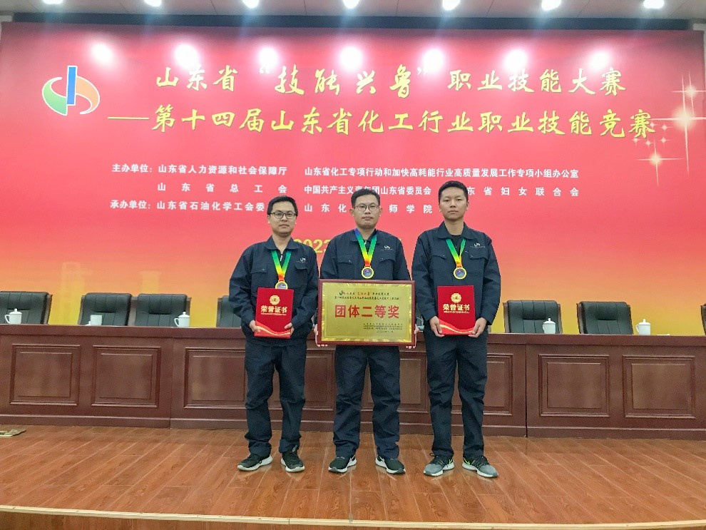 2023年11月6日,山東省“技能興魯”職業(yè)技能大賽——第十四屆山東省化工行業(yè)職業(yè)技能競(jìng)賽圓滿閉幕,聯(lián)泓新材料代表隊(duì)斬獲佳績(jī)。在儀器儀表維修工(職工組)競(jìng)賽中,公司儀表部郭峰、郭洪汝分別獲得個(gè)人一等獎(jiǎng),兩人共同獲得該項(xiàng)目團(tuán)體一等獎(jiǎng);在化工總控工(職工組)競(jìng)賽中,公司生產(chǎn)管理中心MTO裝置高祖仿、徐同仲分別獲得個(gè)人二等獎(jiǎng),趙聯(lián)路獲得個(gè)人三等獎(jiǎng),三人共同獲得該項(xiàng)目團(tuán)體二等獎(jiǎng)。聯(lián)泓新材料獲優(yōu)秀組織獎(jiǎng)。