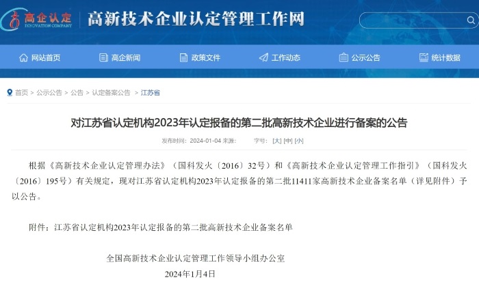 近日,全國高新技術(shù)企業(yè)認定管理工作領(lǐng)導(dǎo)小組辦公室發(fā)布了江蘇省認定機構(gòu)2023年認定報備的第二批高新技術(shù)企業(yè)名單,江蘇省工業(yè)和信息化廳發(fā)布了2023年江蘇省專精特新中小企業(yè)認定名單,聯(lián)泓(江蘇)新材料研究院有限公司通過國家高新技術(shù)企業(yè)認定和2023年江蘇省專精特新中小企業(yè)認定。
