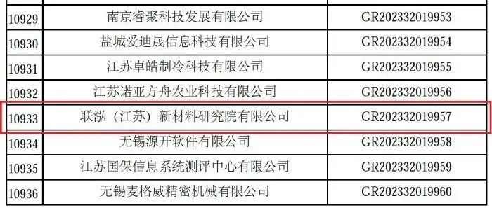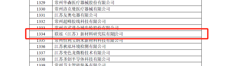 聯(lián)泓研究院通過2023年江蘇省專精特新企中小企業(yè)認定