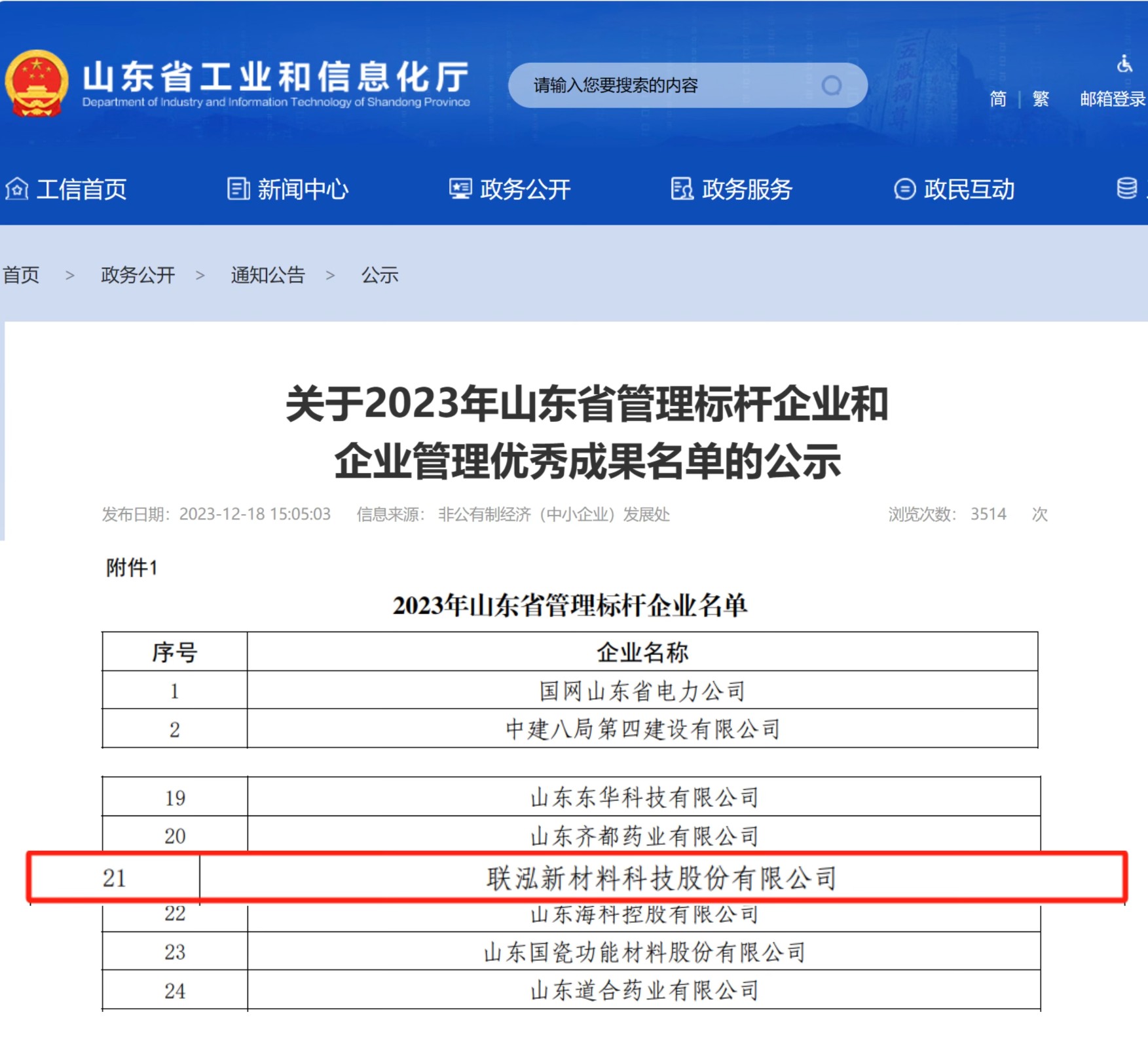 山東省管理標桿企業(yè)名單公示 聯(lián)泓新材料上榜