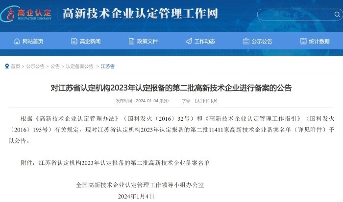 聯(lián)泓研究院通過國家高新技術(shù)企業(yè)和2023年江蘇省專精特新中小企業(yè)認定