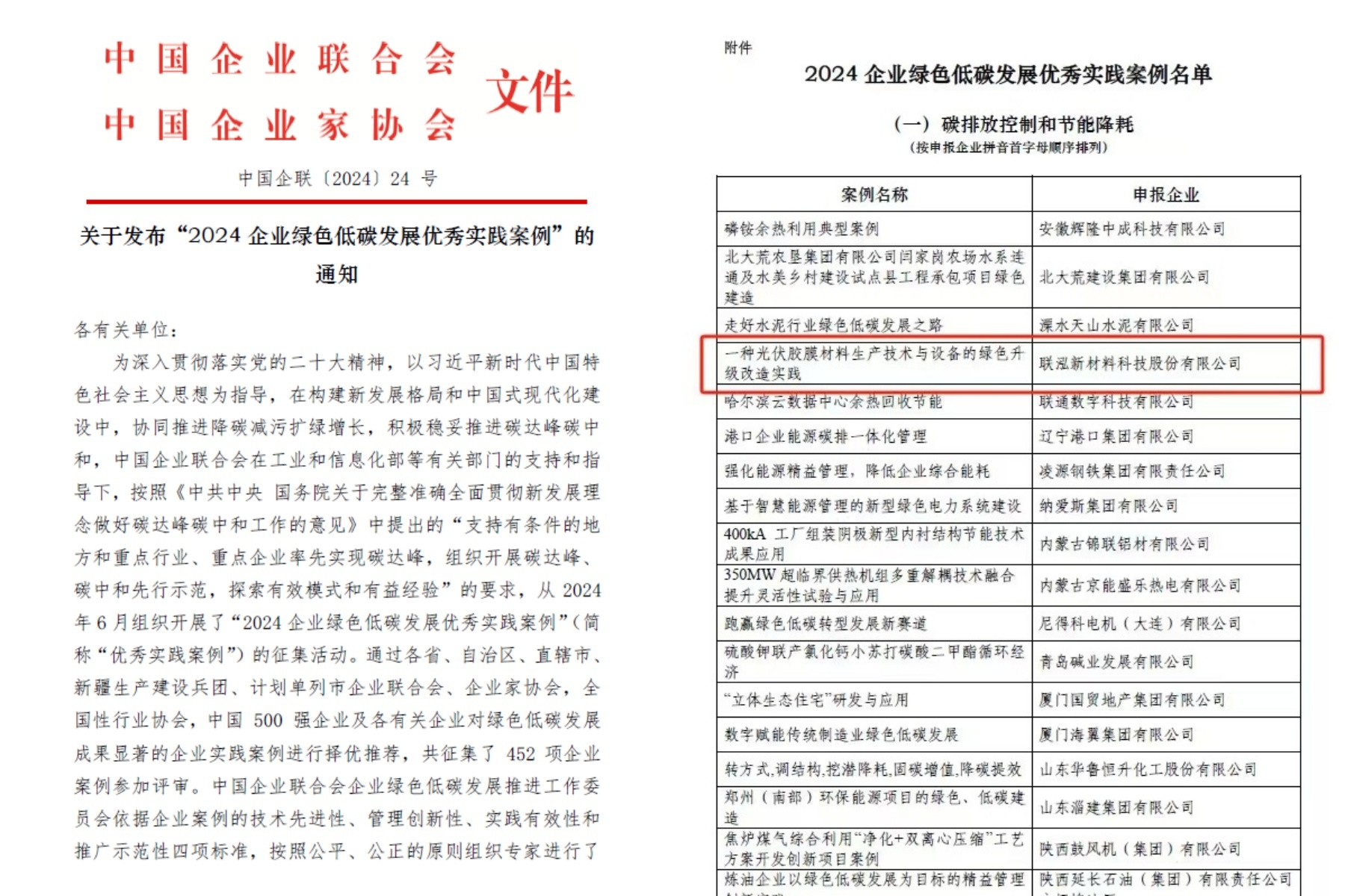聯(lián)泓新材料綠色升級技術(shù)入選中企聯(lián)綠色低碳發(fā)展優(yōu)秀實踐案例
